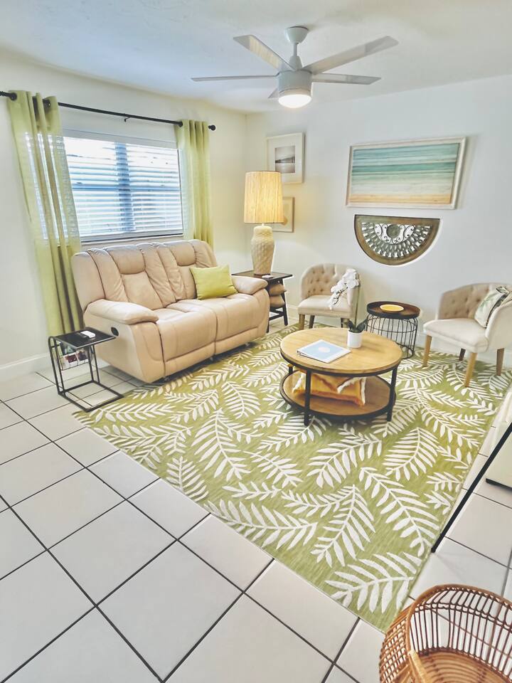 Charming Suite with Midcentury Decor & Modern Amenities—Coconut Cove NOTE: The Beaches have reopened since Hurricane Milton! Welcome to The Coconut Places! Coconut Cove is the perfect getaway for your Sarasota stay, offering a blend of comfort and style with vibrant yellow tones, rich browns, and midcentury modern decor. Whether you're here for a vacation or work, Coconut Cove has everything you need to make your stay enjoyable and relaxing. 🏡 The Space Coconut Cove features a fully equipped kitchen stocked with all essential amenities and more, perfect for preparing meals during your stay. Guests love the thoughtful touches, ensuring you won’t need to rush to the store upon arrival. Convenience Starter Kit Includes: - 2 laundry pods & dryer sheets - 3 rolls of toilet paper - Basic spices & oil - 4 bottles of cold water - 2 trash bags & extra paper towels Guest Reviews: "Jojo's place was the perfect stay for Sarasota." - James, June 2024 "The home was clean and well stocked." - Kristen, May 2024 💤 Bedrooms & Bathroom: - Two ultra-comfortable Sealy beds with luxurious linens and multiple pillows. - Spacious bathroom with his and hers sinks, a rainfall shower head, and a detachable hand-held shower head. We provide Island Tranquility vegan, cruelty-free shampoo, conditioner, and body wash in a refreshing green tea and lemongrass scent. 🏖️ Key Amenities: - High-speed optic Wi-Fi - Roku TVs in every room - Beach essentials: Chairs, cooler, umbrella, towels - Propane BBQ with utensils - Fully-fenced shared courtyard with outdoor furniture - Basketball hoop and firepit for outdoor fun - On-site laundry with two sets of washers and dryers (2 laundry pods and dryer sheets provided) - Dedicated parking spot - Extra towels and linens provided - Trash and recycling 👨💻 For Remote Work: - Dedicated workspace with desk, lamp, and plug-ins for laptops and phones. - Free high-speed Wi-Fi to keep you connected. Guest Review: "Great place to base out of for work." - Shelly, May 2024 🌴 Outdoor Fun: Relax in the **shared courtyard** with a firepit, enjoy BBQ meals, or shoot hoops with the basketball hoop. The **beach items** provided make it easy to enjoy Sarasota’s beautiful coastline. Coconut Cove provides an exceptional vacation experience with every detail thoughtfully designed to ensure a comfortable and memorable stay. Whether you're here for work or relaxation, Coconut Cove has it all! Book now and enjoy a relaxing stay at The Coconut Places—we look forward to hosting you! **Save Coconut Cove** by clicking the heart icon at the top right, so you can easily find and share it with friends.