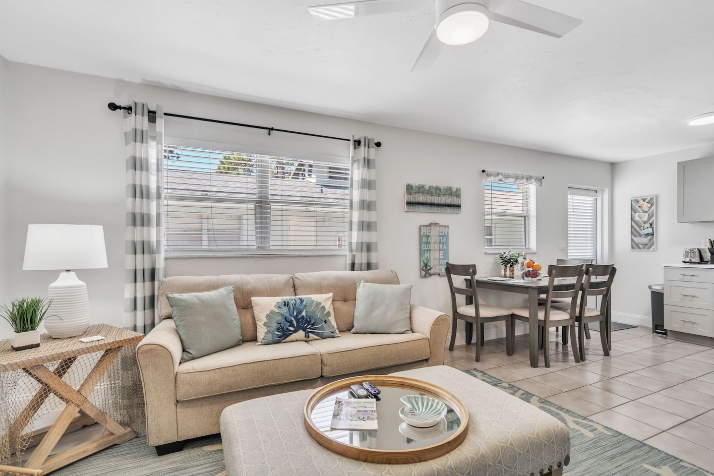 Charming 2-Bedroom Suite with Beach Access—Coconut Hut NOTE: The Beaches have reopened since Hurricane Milton! Welcome to The Coconut Places! Escape to sunny Sarasota and enjoy a relaxing stay at Coconut Hut, a charming 2-bedroom, 1-bathroom vacation rental, just minutes from the area’s top attractions. This well-appointed suite offers everything you need for a perfect vacation or a productive work trip. 🏡 The Space Relax in the comfortable living room with a 65" Roku Smart TV, or prepare meals in the **fully stocked kitchen** complete with everything you need for cooking at home. Enjoy your morning coffee and breakfast in the shared fully-fenced courtyard, offering privacy and tranquility. Guest Reviews: "Jojo's place was the perfect stay for Sarasota." - James, June 2024 "The home was clean and well stocked." - Kristen, May 2024 💤 Bedrooms & Bathroom: - Two ultra-comfortable Sealy beds with soft linens and multiple pillows for a restful sleep. - Spacious bathroom with his and hers sinks, a jetted bathtub, and a luxurious rainfall shower head with a detachable hand-held shower head. - We provide **Island Tranquility** vegan, cruelty-free shampoo, conditioner, and body wash in a refreshing green tea and lemongrass scent. 🏖️ Beach & Outdoor Fun: - Just a short distance to Siesta Key and Lido Beaches. Take the complimentary **BAY RUNNER TROLLEY** from downtown to Lido Key, available seven days a week. - Enjoy access to beach essentials including chairs, cooler, umbrella, and towels. - Relax in the fully-fenced shared courtyard with furniture, a propane BBQ, a firepit, and a basketball hoop. 🌳 Nearby Attractions: - The Bay Park: Just a block away, featuring 14 acres of green space, playgrounds, scenic walkways, and sunset views. - Centennial Park - Publix, Tumeric Restaurant, Wicked Cantina, and Reserve (John and Mable Ringling’s first home)**, all just a short walk away. - Canine Club Dog Park (1 mile away) for pet owners, plus two faux grassy areas in the courtyard for your furry friends. 🏖️ Key Amenities: - High-speed optic Wi-Fi - Roku TVs in every room - On-site free laundry (2 laundry pods and dryer sheets provided) - Dedicated parking spot - Trash and recycling - Extra towels and linens provided 🧳 Convenience Starter Kit: To ensure a seamless start to your stay, we provide: - 3 rolls of toilet paper - Basic spices and oil - 4 bottles of cold water - 2 trash bags - Extra paper towel roll 👨💻 For Remote Work: - Workspace with desk and lamp, plus plugs for laptops and phones. - Free high-speed Wi-Fi for staying connected. Guest Review: "Great place to base out of for work." - Shelly, May 2024 Coconut Hut features warm blues, greys, gold, and cream tones with beachy decor, offering a cozy and stylish retreat. Whether you're here for the beach, work, or exploring Sarasota's vibrant downtown scene, Coconut Hut provides an exceptional vacation experience. Book your stay today and enjoy all that Sarasota has to offer at Coconut Hut! Save Coconut Hut by clicking the heart icon at the top right to easily find and share it with friends!